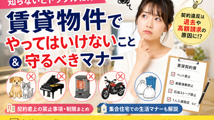 お部屋探しガイド 2021.04.15 はじめてのお部屋探し, 入居, 契約, 賃貸物件で守るべきルールとマナー完全ガイド|契約違反・近隣トラブルを防ぐポイント 賃貸物件におけるルールとは、賃貸借契約書に明記された法的な禁止事項と、集合住宅での共同生活を円滑にす… 続きを読む